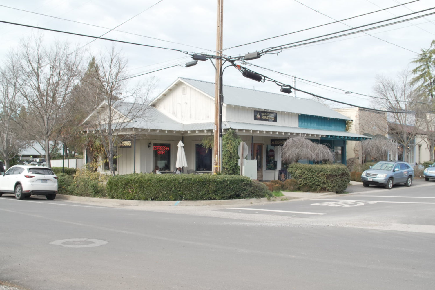 Our café and retail shop is located at the corner of Jones and Scott Streets, one block west of the four-way stop at the south end of Main St. in Murphys. We are within easy walking distance of Main St. shops, wine tasting rooms and restaurants, yet far enough to provide a cozy, quiet spot to linger over a latte with friends and family.